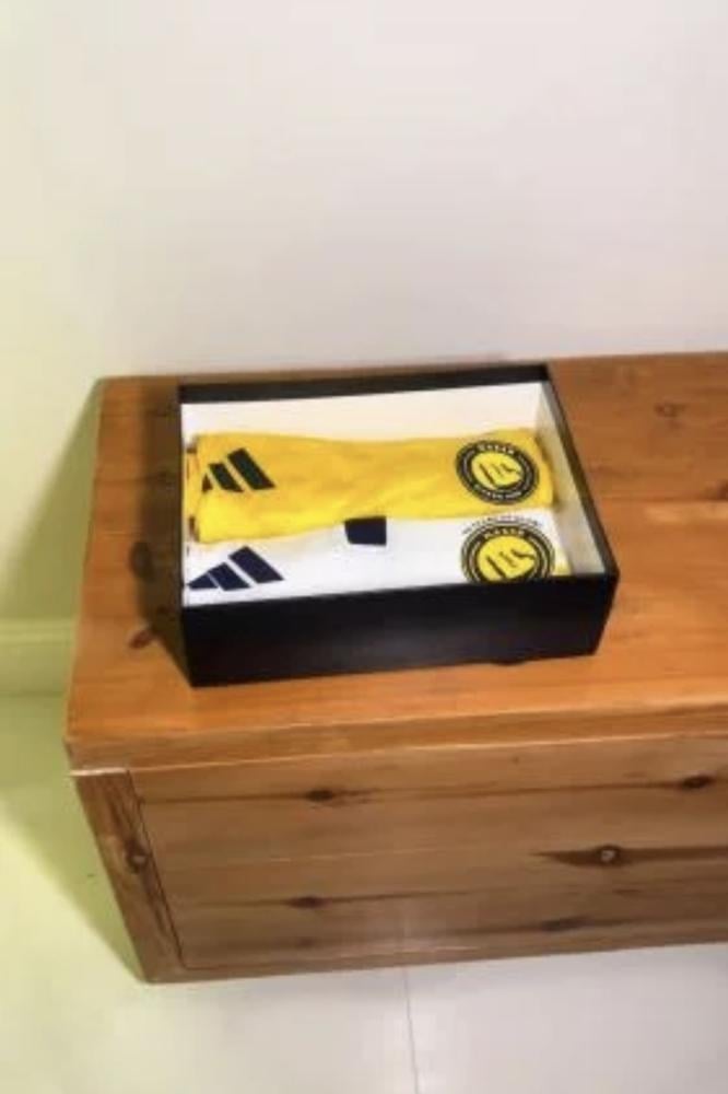 * التصميم: الأصفر والأبيض ، وهي ألوان نادي النصر .